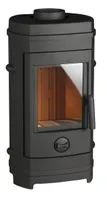 Il design compatto con colore antracite si adatta facilmente a diversi ambienti, mentre il vetro panoramico permette di godere della vista della fiamma. Il sistema di aria primaria e secondaria regolabile consente una combustione controllata ed efficiente.